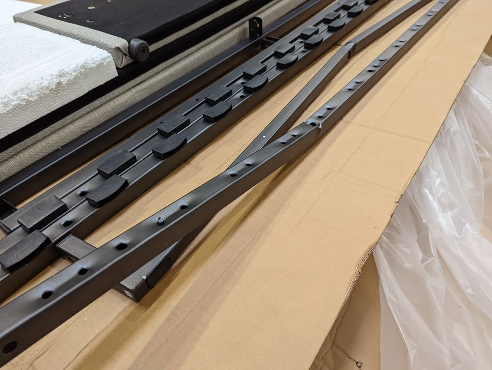 missing slats fixings/hardware and ottoman frame is bent