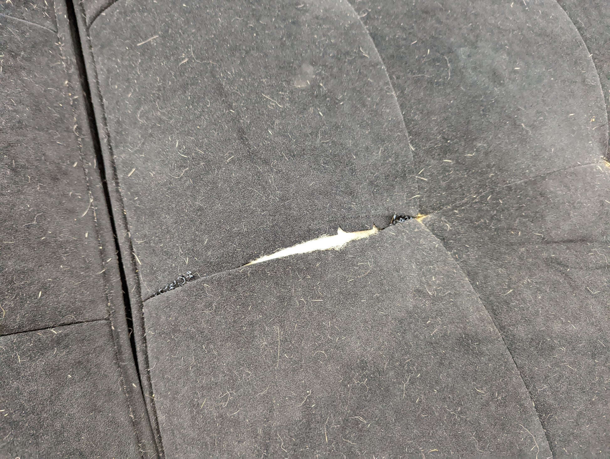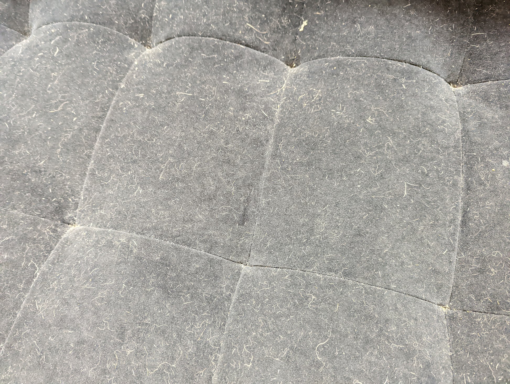 item is full of pet hairs has stitching come undone on seat and missing feet