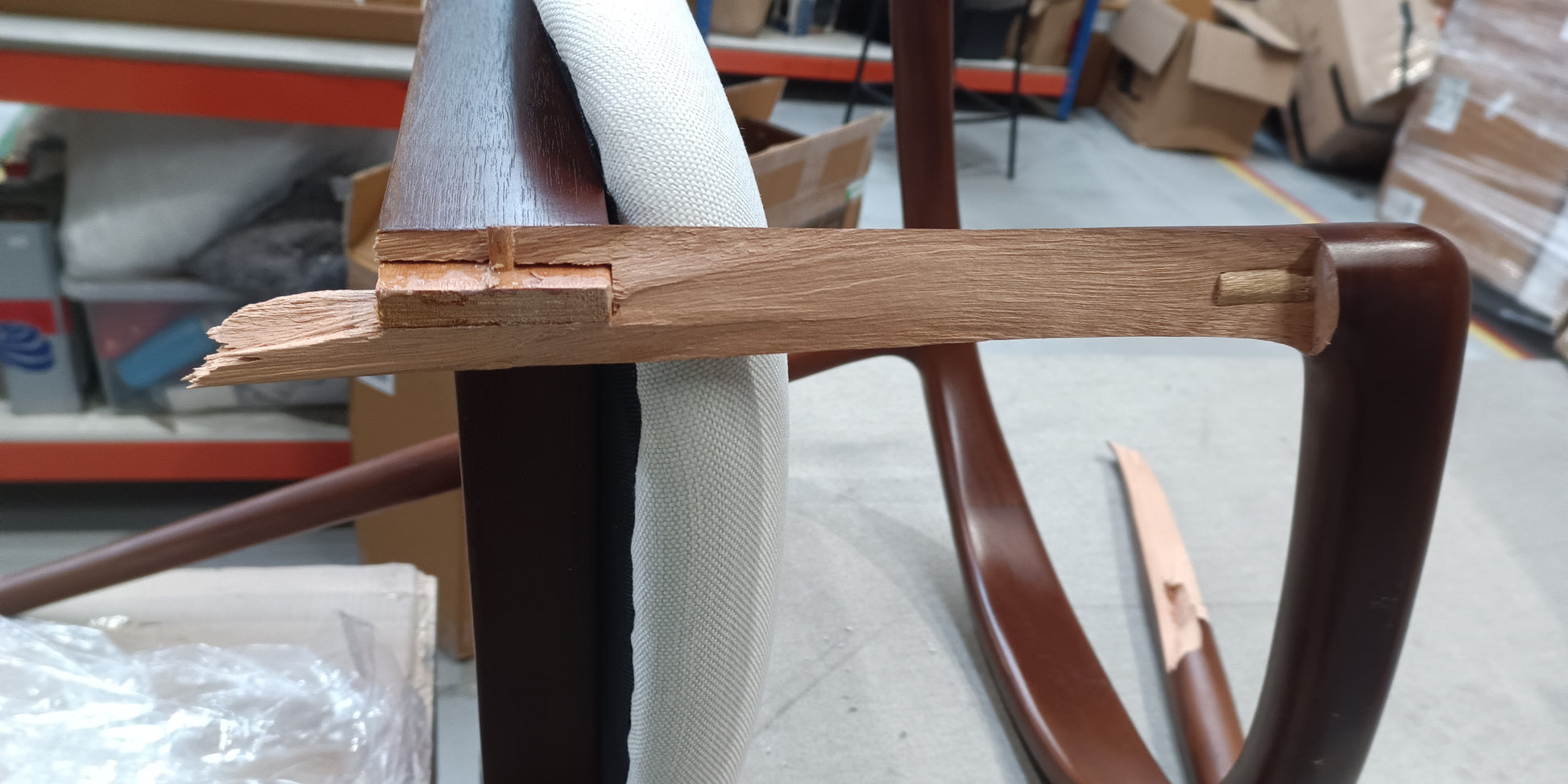 Chair has 1 snapped leg