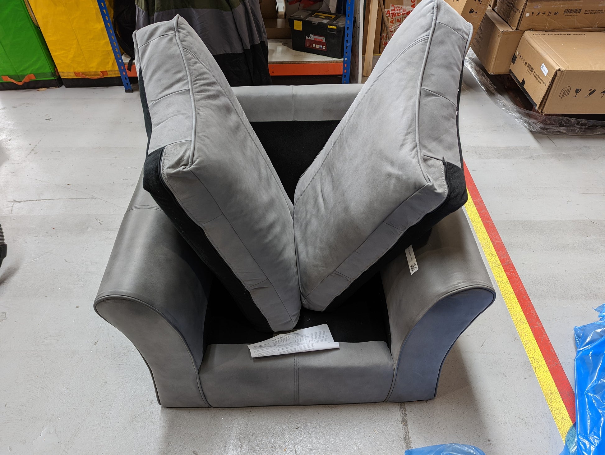 - Marks & Spencer Abbey Armchair in Grey Family Leather RRP £699 - the cushion doesn't match, and there no legs with it.