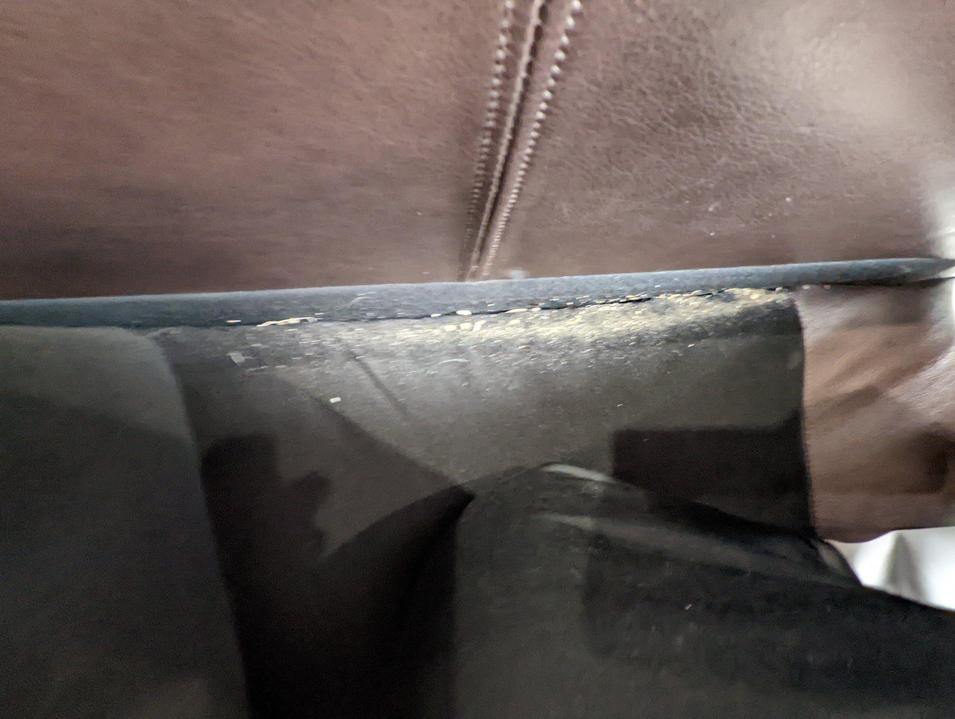 - Marks & Spencer Abbey Highback 2 Seater Sofa in Dark Brown Classic Leather RRP £949 - dirty, dog hairs, one of the cushion is rip.