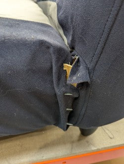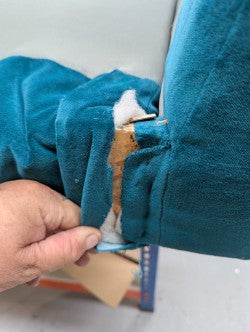 - Marks & Spencer Foxbury Large Sofa in Dark Teal Aquaclean Velvet RRP £1299 - broken spring rail ,damaged fabric ,broken foot plate