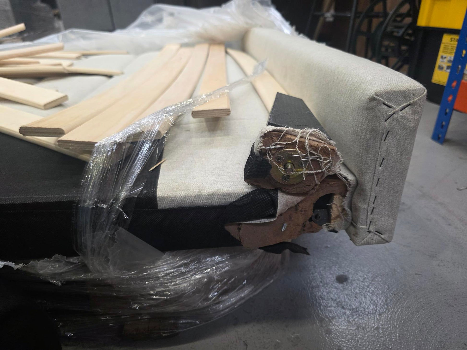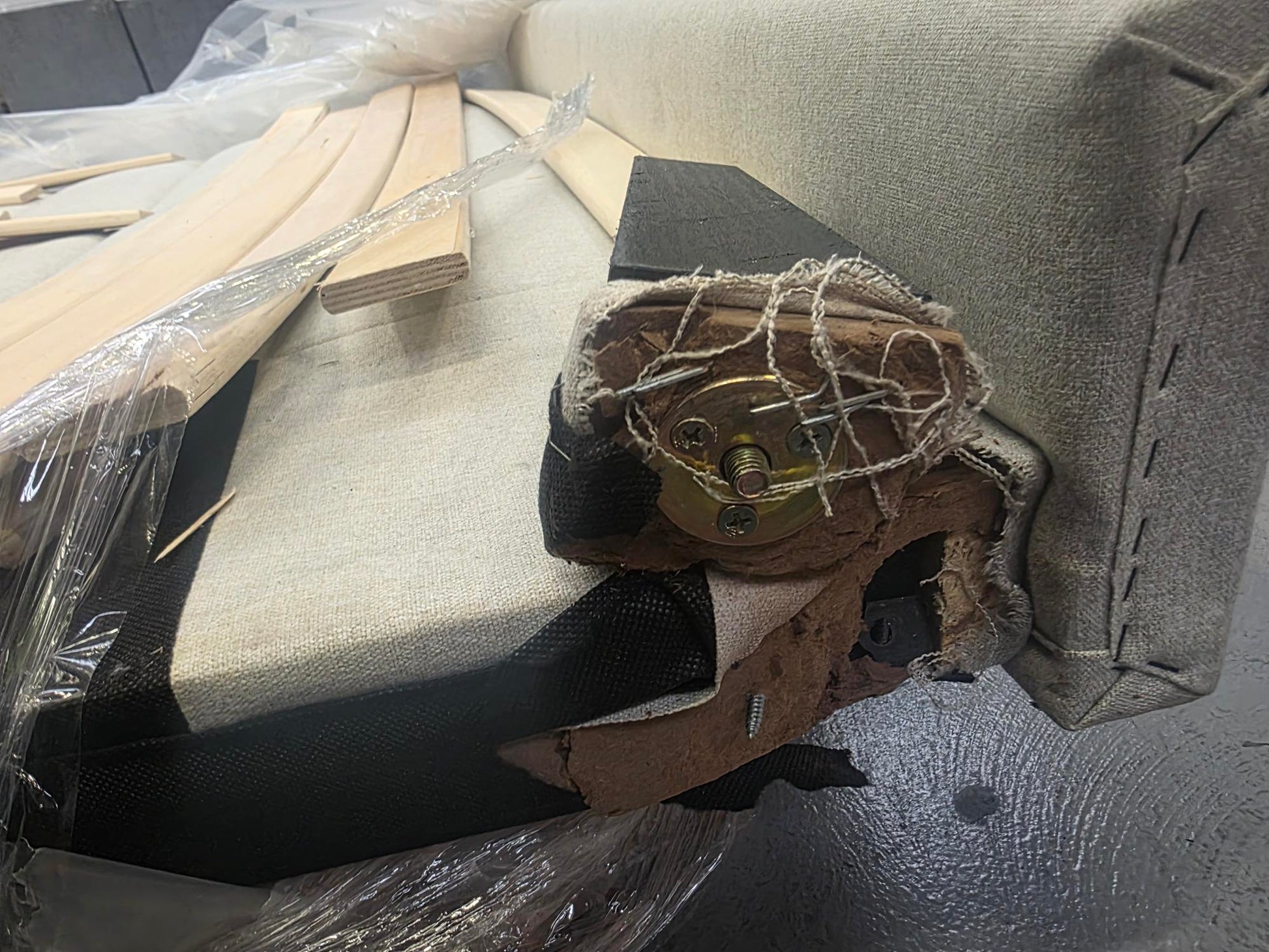 snapped frame dirty and pet hairs all over spme fixings missing