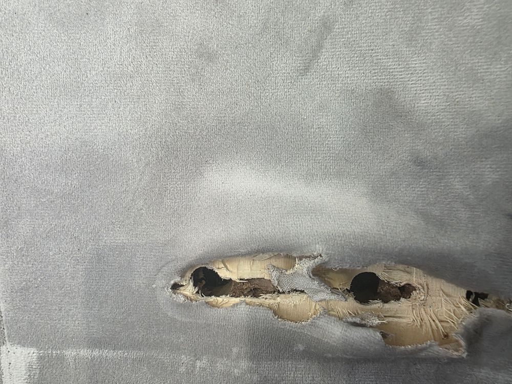 - Marks & Spencer Hanton Velvet Ottoman Bed King Size 5ft in Silver RRP £849 - headboard bamaged and missing fixing