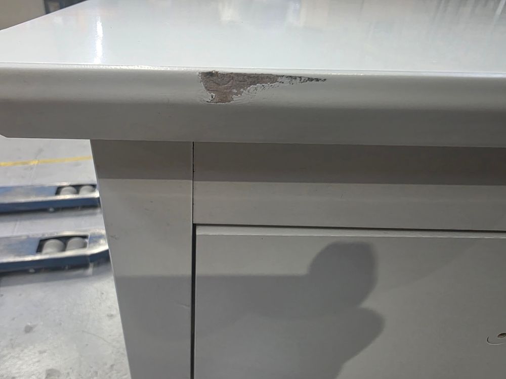 - Marks & Spencer Hastings 10 Drawer Chest in Soft White RRP £599 - back of 1 of the drawers is snapped 2 handles missing back foot broken off and bolt bent scuff mars on corners and some draw fronts
