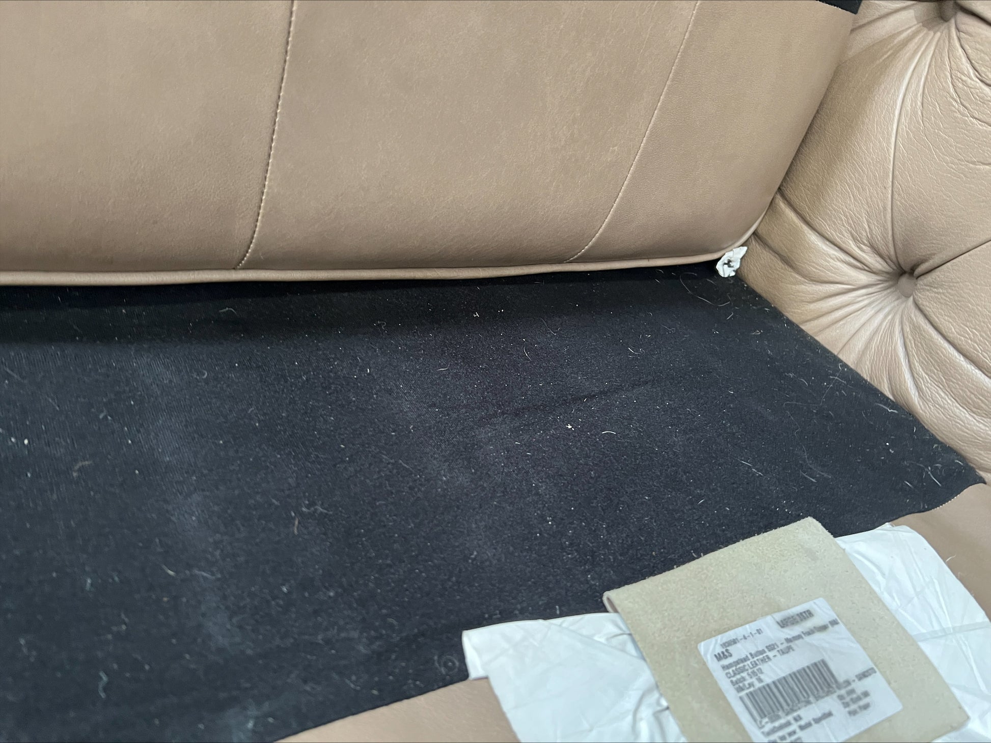 - Marks & Spencer Hampstead Large 3 Seater Sofa in Taupe Classic Leather RRP £899 - Item is full of pet hair, has compression marks and is soiled on the back rest.