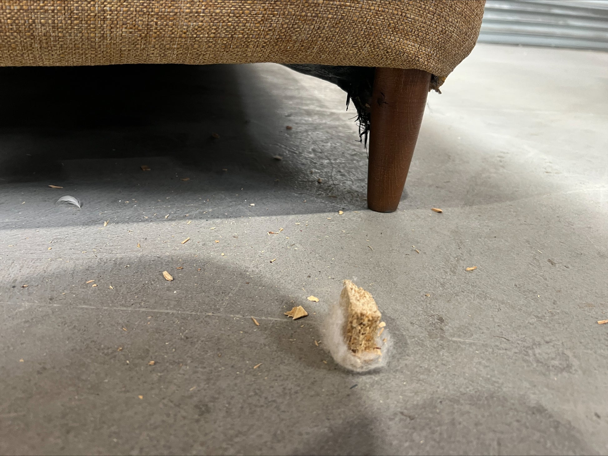 - Marks & Spencer Mia 4 Seater Sofa in Ochre House Weave RRP £995 - Item has a snapped frame near the legs. Item has a deep stains on the back rest and is missing 2 legs.