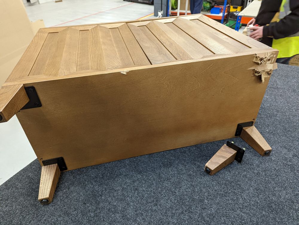 leg broken off damage to topleft hand corner