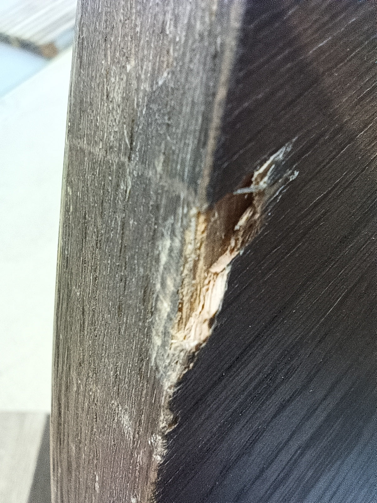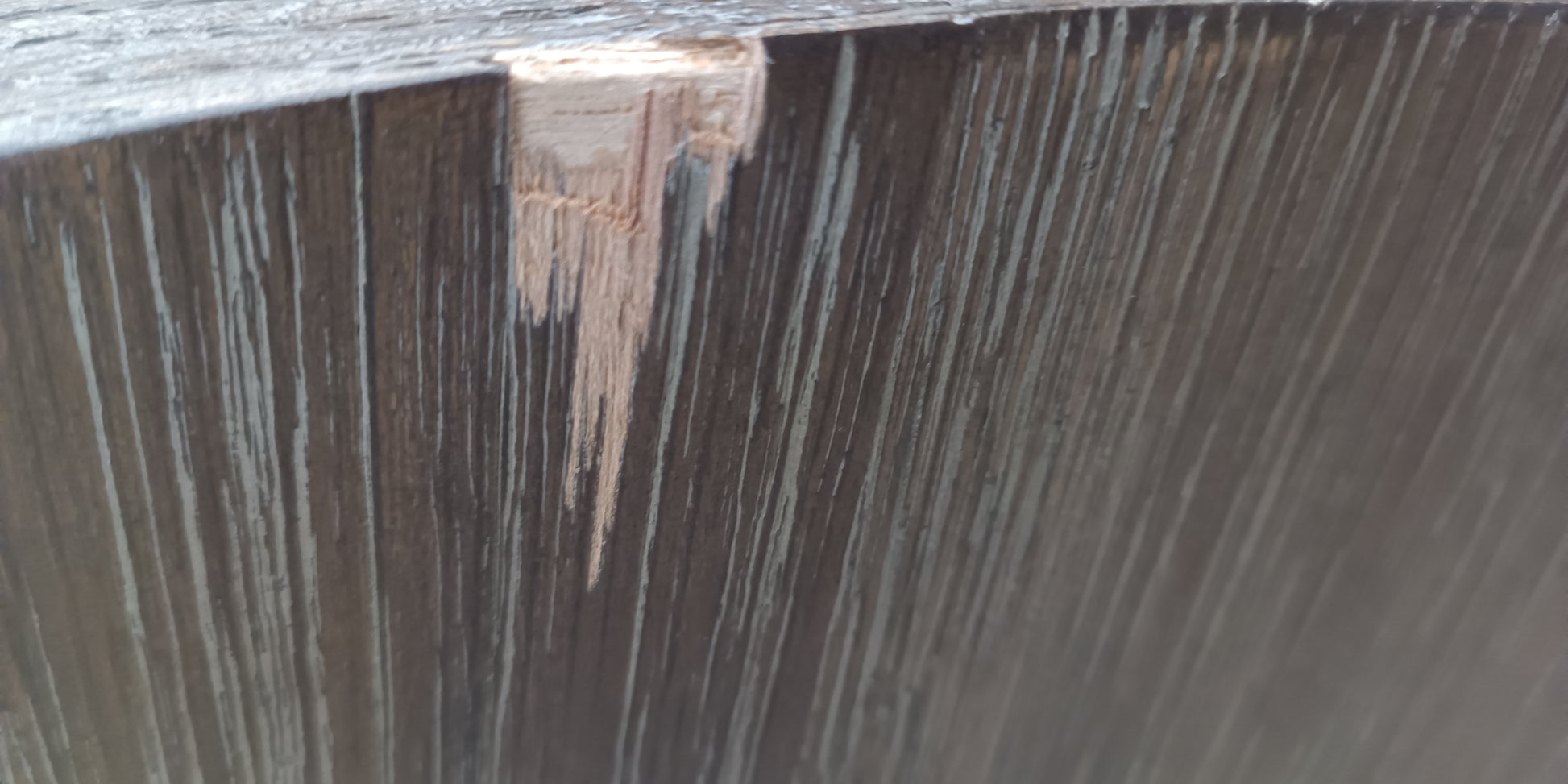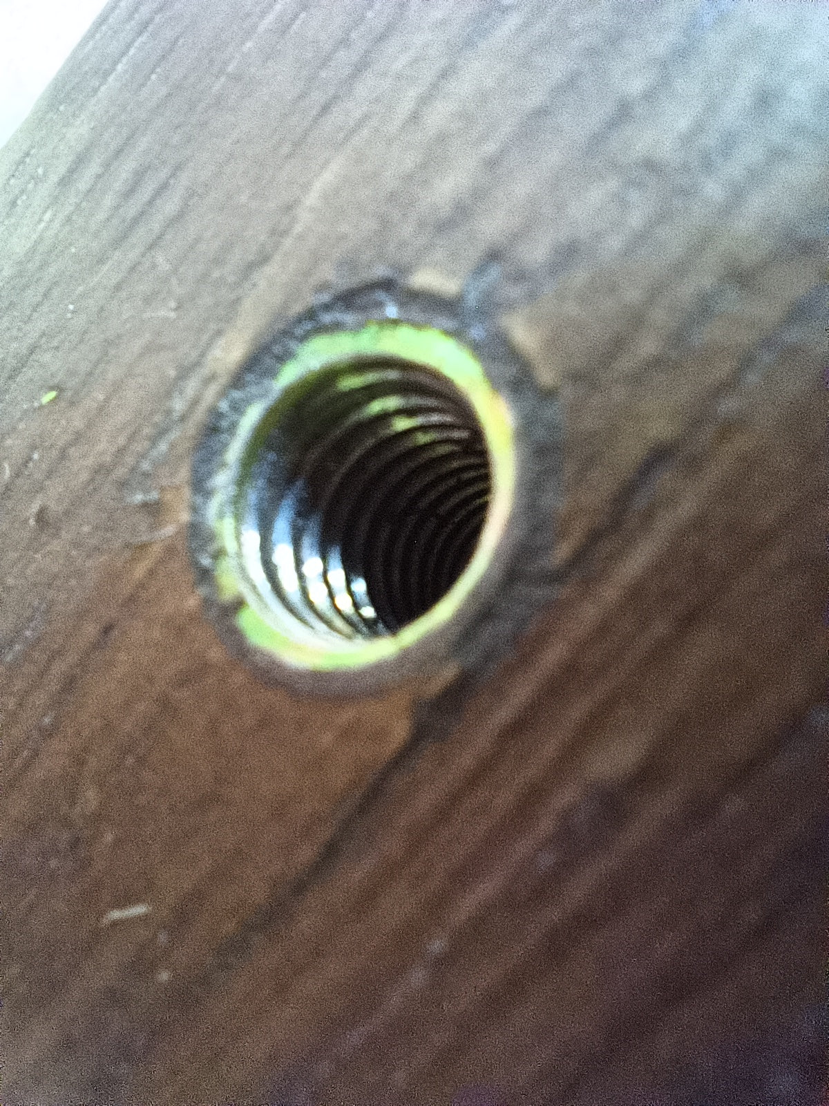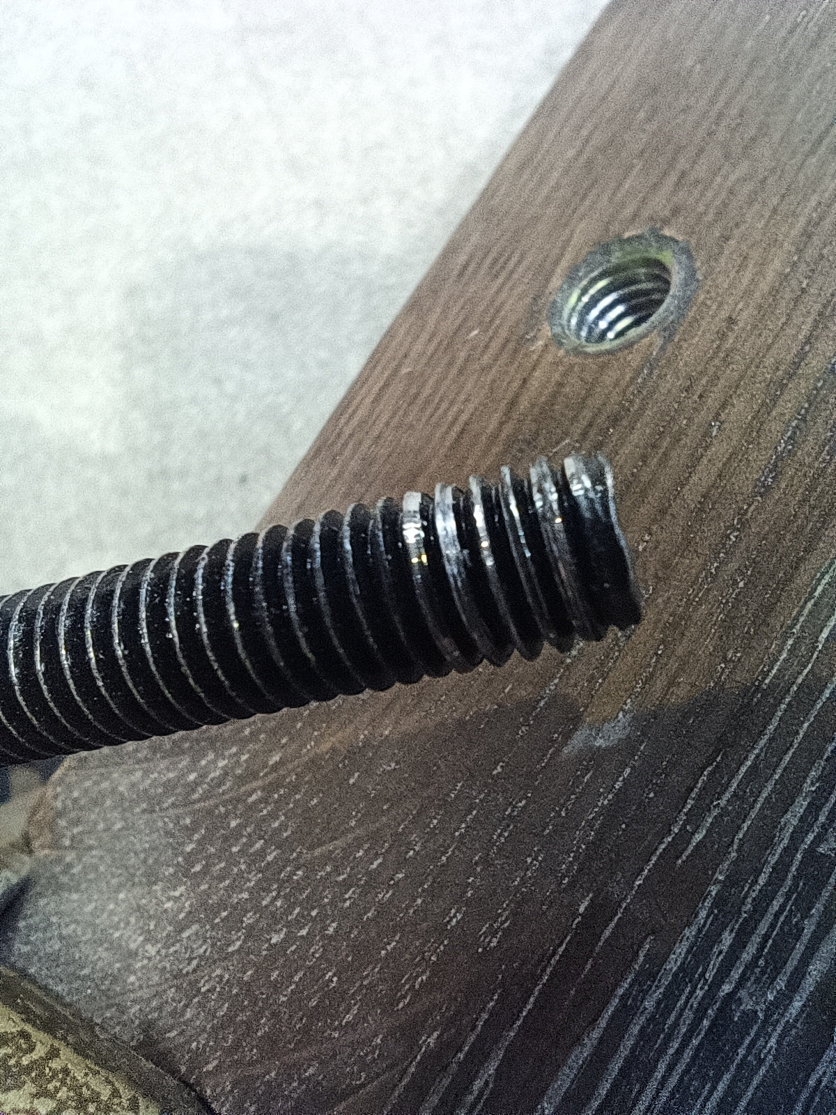 The threads are stripped, areas of damage, peel to the veneer.