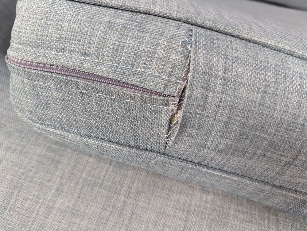 - Sofology Oscar 3-Corner-1 Fine Textured Chenille Silver Mix with Gold Trim RRP £2399 - Front of sofa damaged