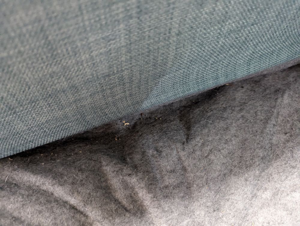 - Sofology Ashford 3 Seat Sofa Como Duck Egg Light Wood feet RRP £599 - Sewing has split on a cushion. Evidence of animal hair. Stain on the seat cushion