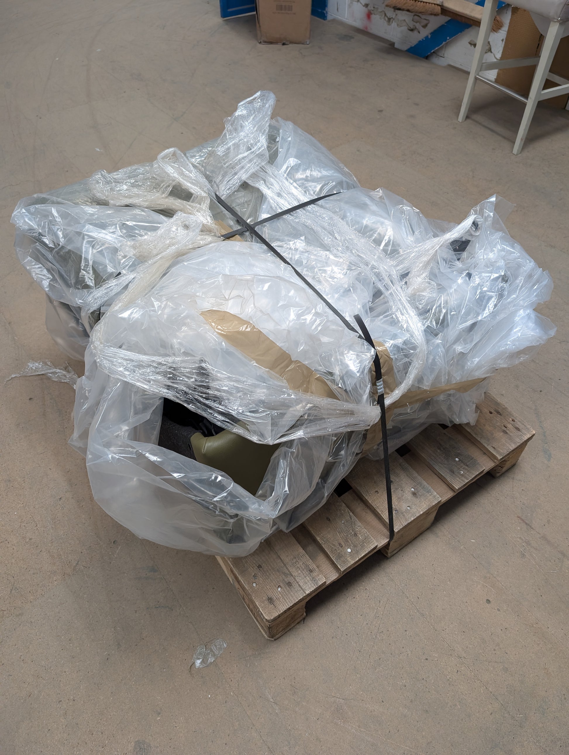 Empty pallets can be left on site when purchases are collected, although this is not a requirement. All other packaging is purchased with the items and is the property of the buyer, as such it must be taken when the order is collected.
