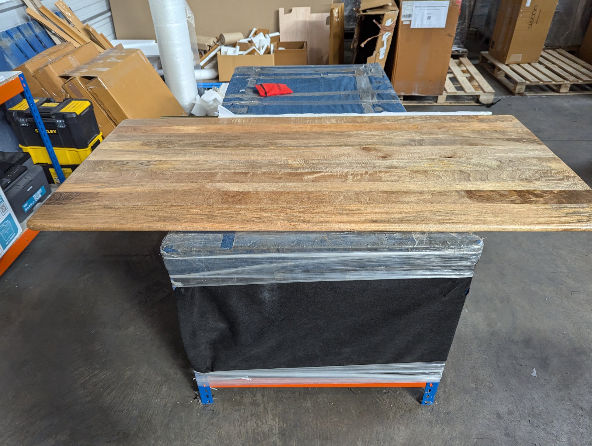 - Swoon Houdini Eight-seater Dining Table, Natural Mango Wood, Charcoal & Brass RRP £759.00 - table top only. missing legs. small split on one end