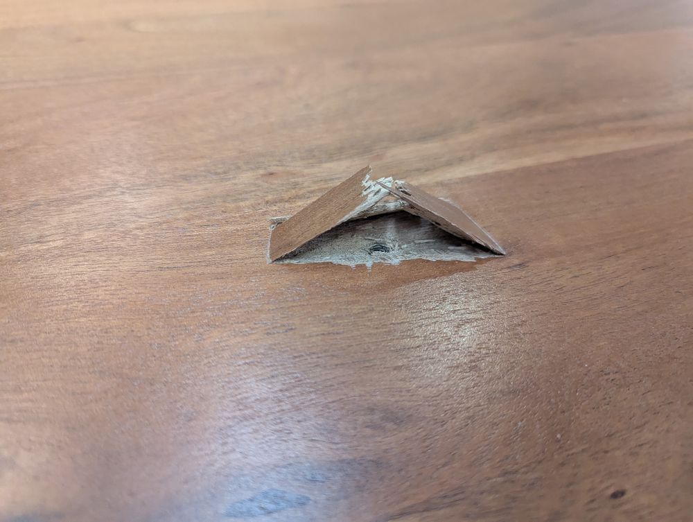 - Southwark Dining Table in Acacia RRP £299 - Bolts too big, have cracked the center of the table.