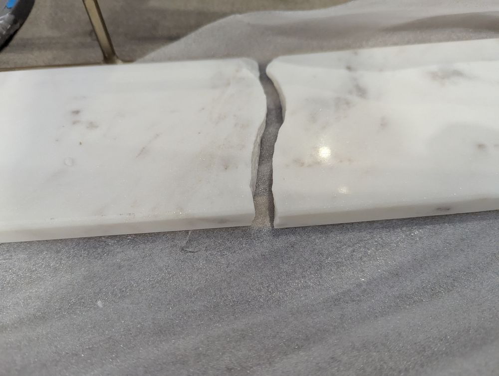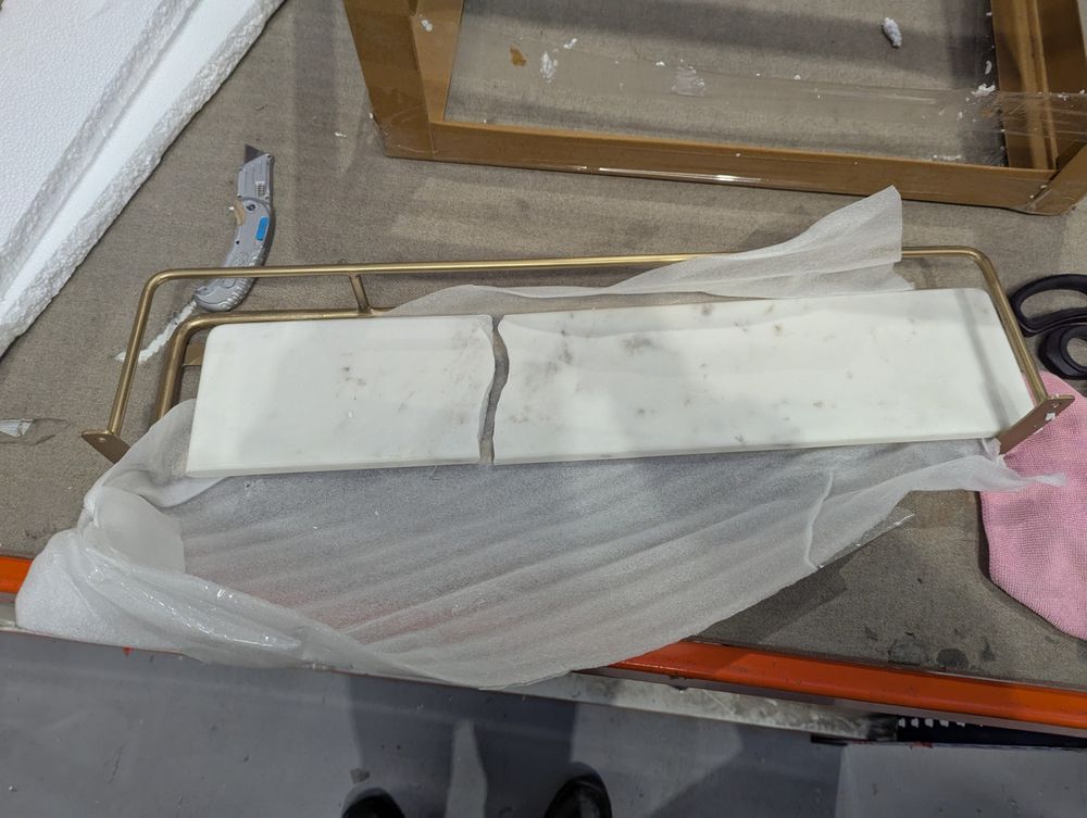 Marble shelf has cracked in half.