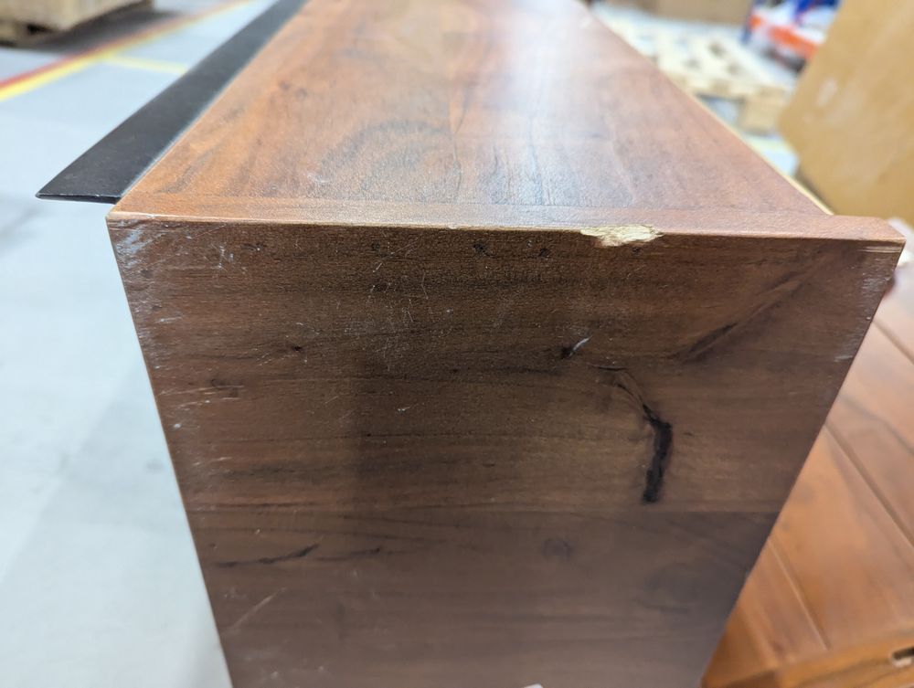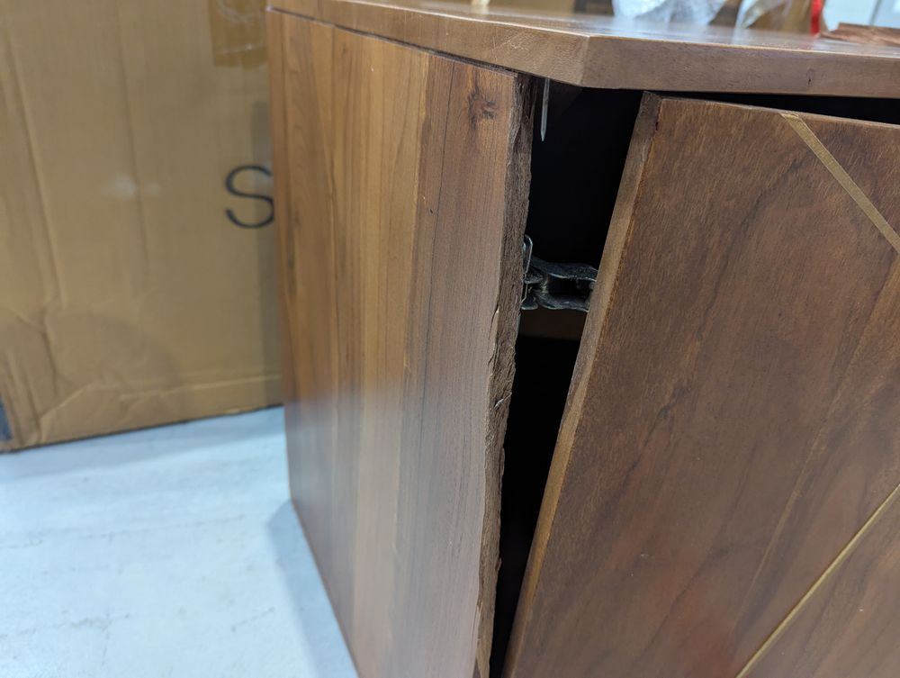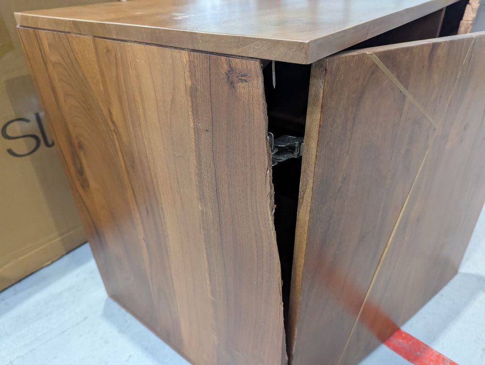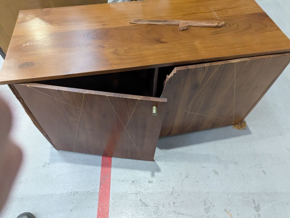 Unit is completely damaged, missing chunks of wood, cracked in multiple places.