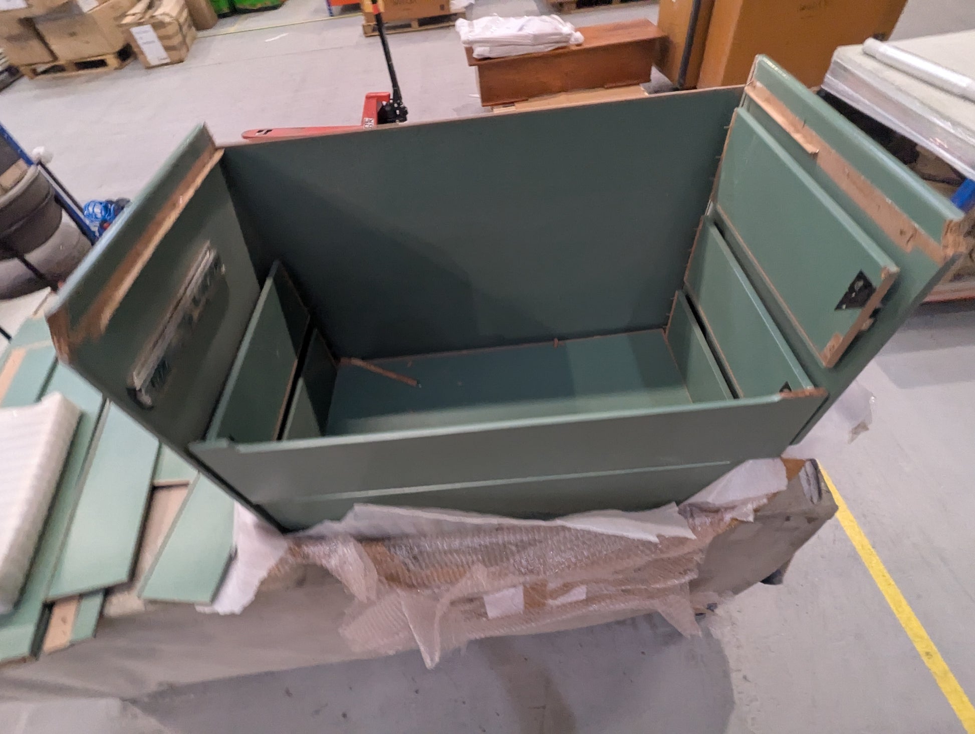 Empty pallets can be left on site when purchases are collected, although this is not a requirement. All other packaging is purchased with the items and is the property of the buyer, as such it must be taken when the order is collected.