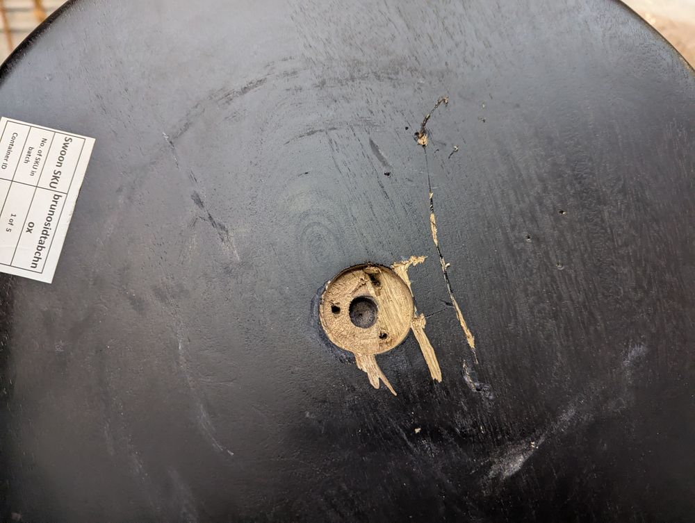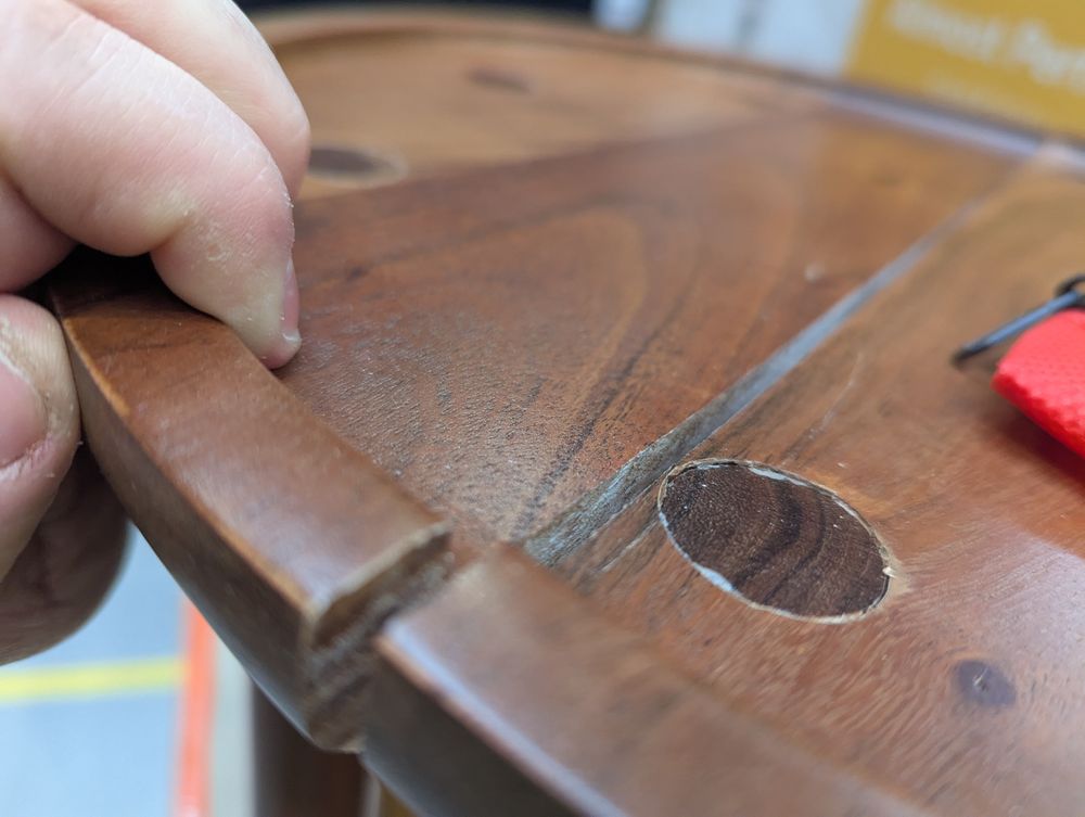 Split running through centre of table top